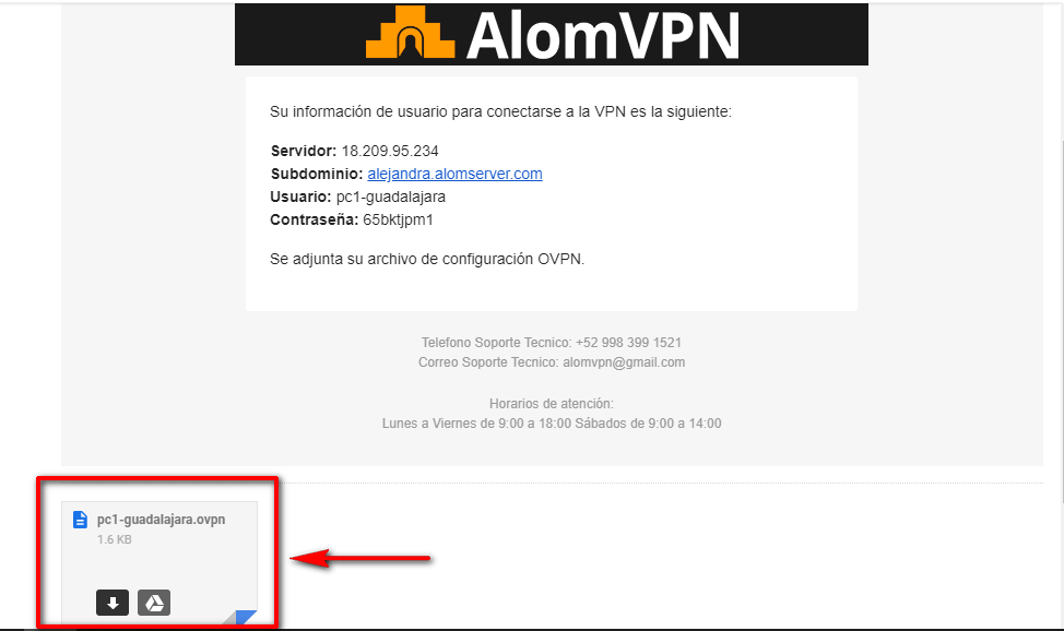 3 Accedemos al correo ingresado y descargamos el archivo .ovpn que nos fue enviado.
