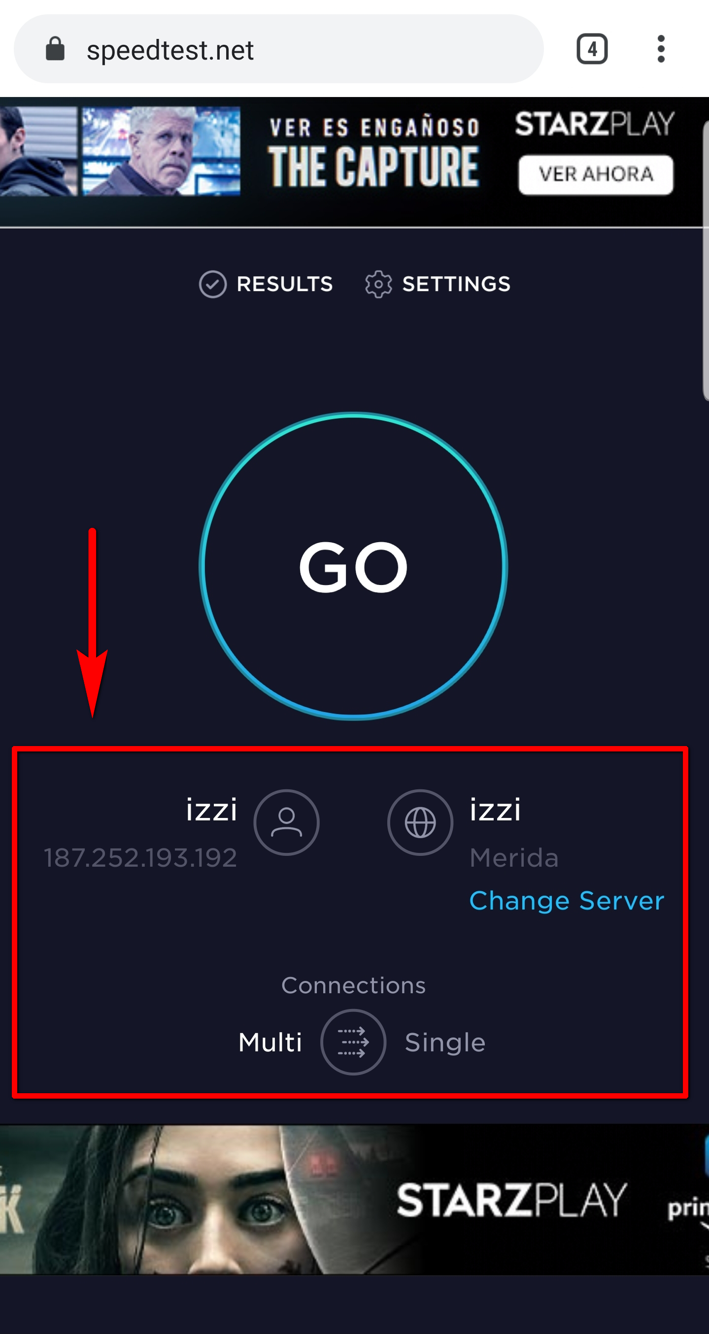 8 Validamos que estemos navegando a través de nuestro proveedor de internet.