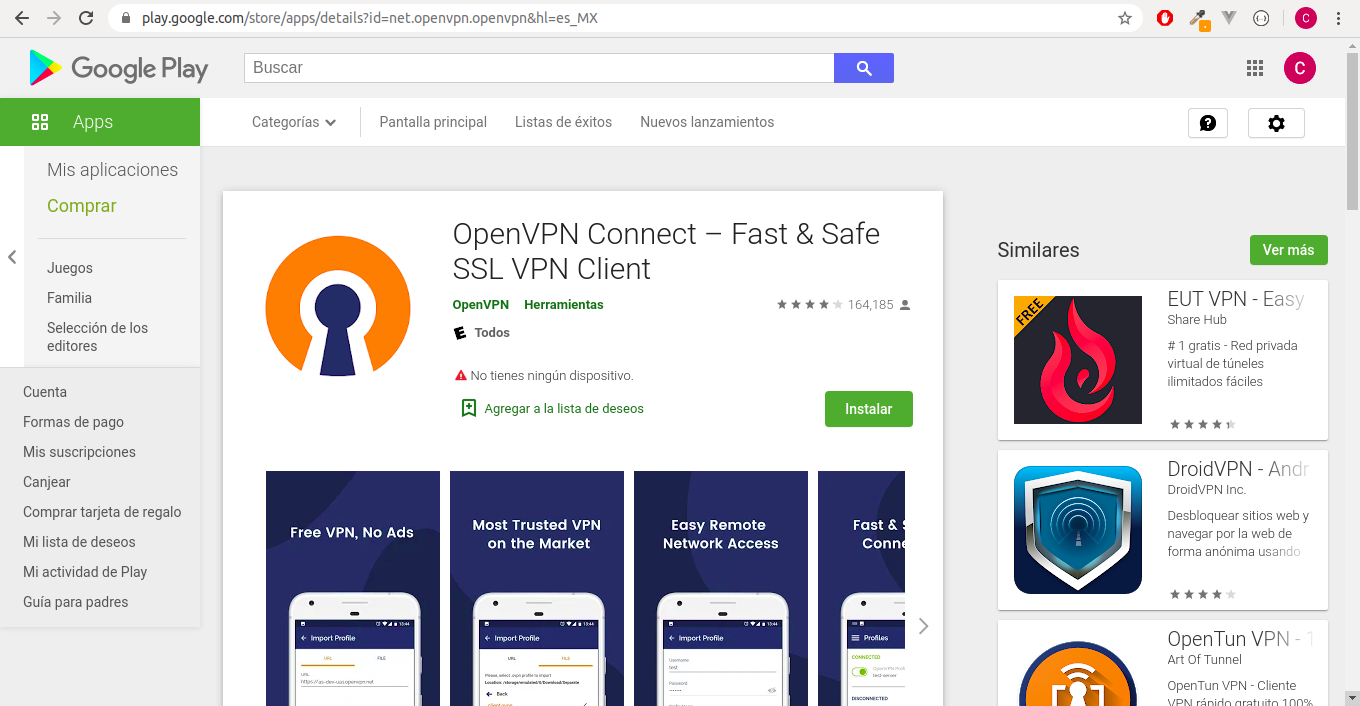 Para dispositivos con SO Android puede obtenerse a través de https://play.google.com/store/apps/details?id=net.openvpn.openvpn&hl=es_MX.