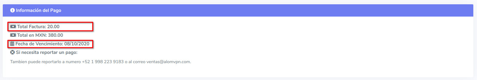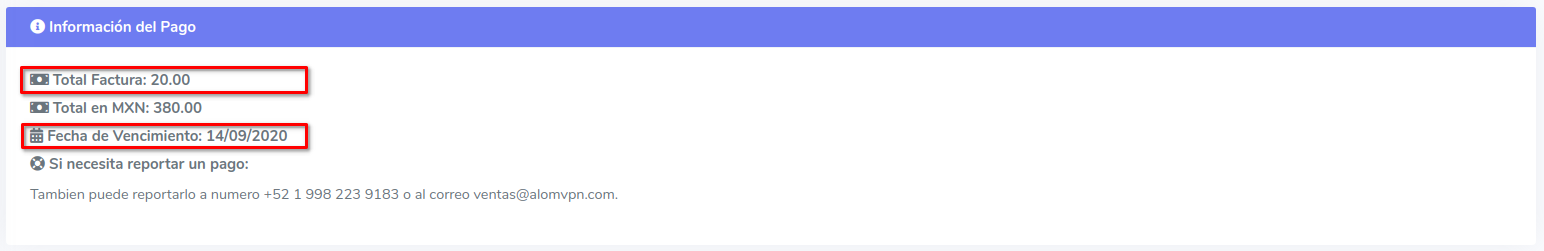 Al momento de generar un nuevo servidor en Alomvpn, se pueden dar ciertos casos en cuanto a las fechas de pago y fechas de vencimiento. En este ejemplo se da por hecho que el cliente paga sus respectivas facturas con un plan de 20 USD.