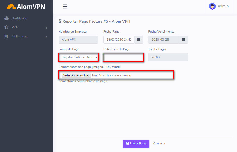 2Escoger la forma de pago, agregar referencia y adjuntar imagen.