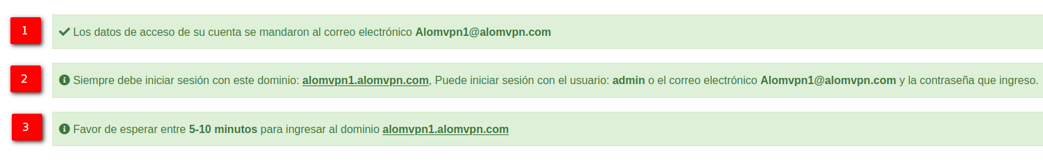 - 3.- Tiempo de espera estimado para poder acceder a su respectivo dominio.