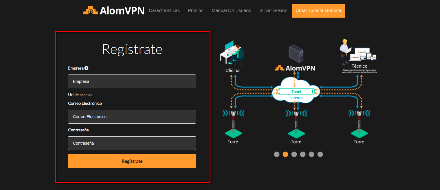 1Debemos dirigirnos a https://alomvpn.com/.donde podremos ver la siguiente sección.